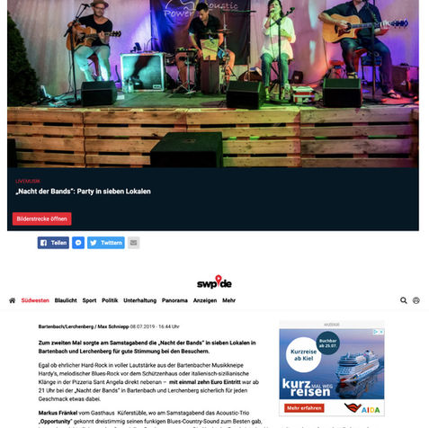 ... drei energiegeladene Frauen an Schlagzeug (Annika), Gitarre (Diana) und Gesang (Nicole), deren männlicher Kollege am Bass (Simon) fast schon als ruhender Pol in einer von harten Beats, Gitarrensoli und kräftiger Stimme getriebenen Performance fungierte. Ihre selbst geschriebenen Songs, die sie am liebsten live auf der Bühne zelebrieren, demnächst aber auch in ein erstes Album packen wollen, handeln von Erfahrungen, die mal erfreulicher, mal schmerzhafter Natur sind. ...